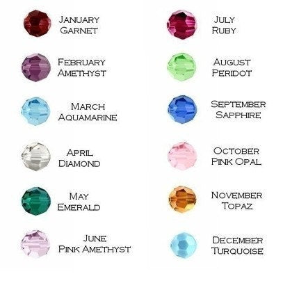 Different colors: Purple,yellow,pink,aquamarine,peridot and crystal (birthstone color aravailable).