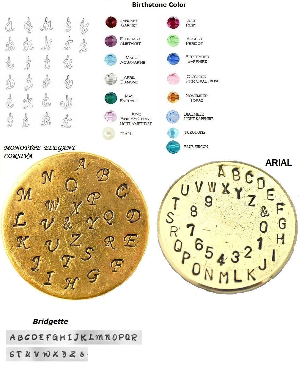 3. Type of Letter (Bridgette, Monotype Elegant/Corsiva, Arial) (Plain or Oxidate-Tarnished)