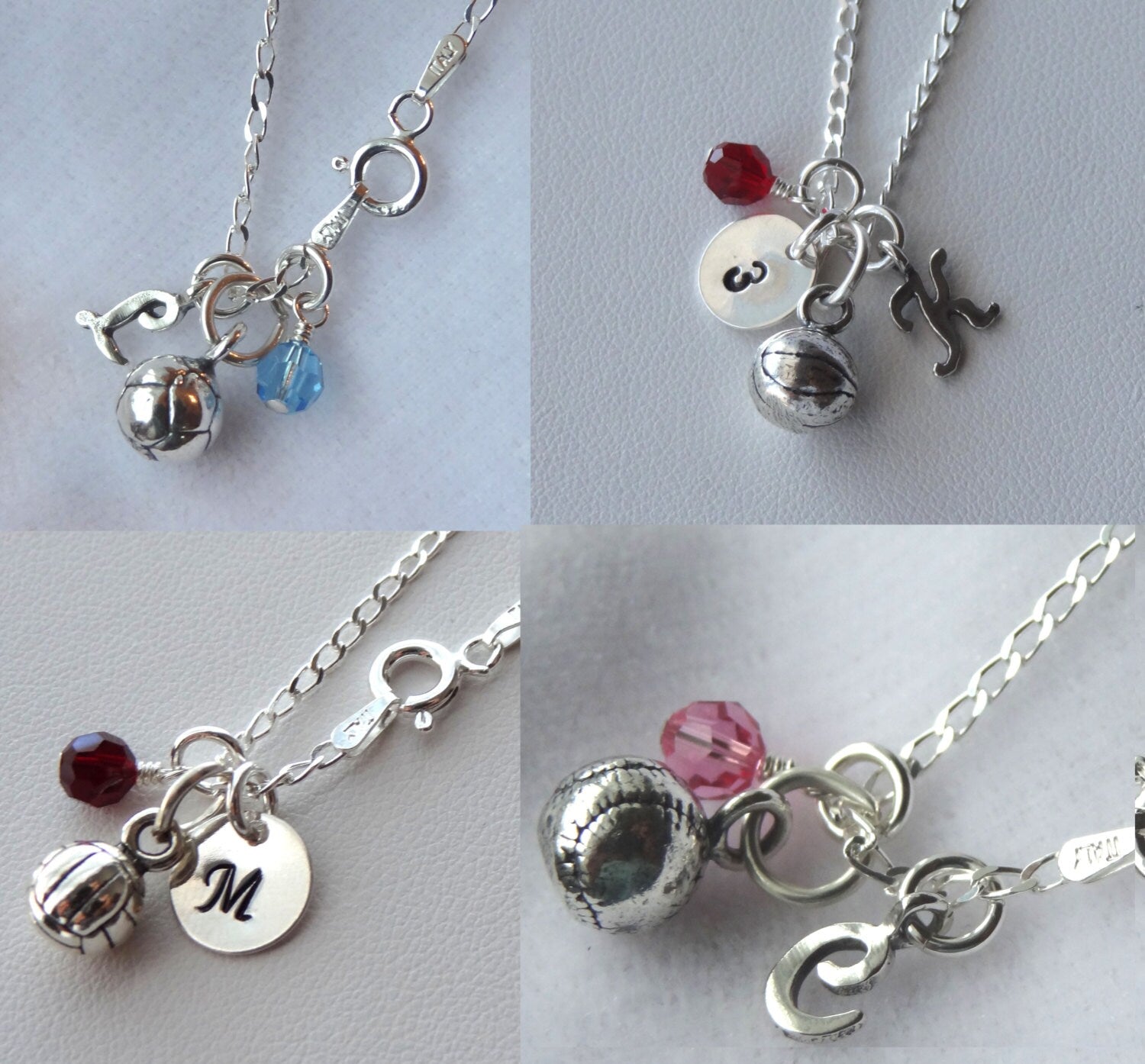 Sterling Silver Personalized Sport Ball Necklace, Initial Letter Birthstone Necklace,Basketball Soccer Baseball Softball Volleyball Necklace